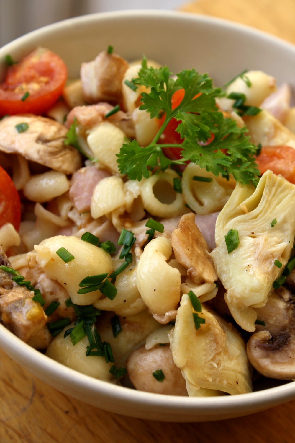 Salade de pâtes [Coeur d’artichaut, champignons & jambon]