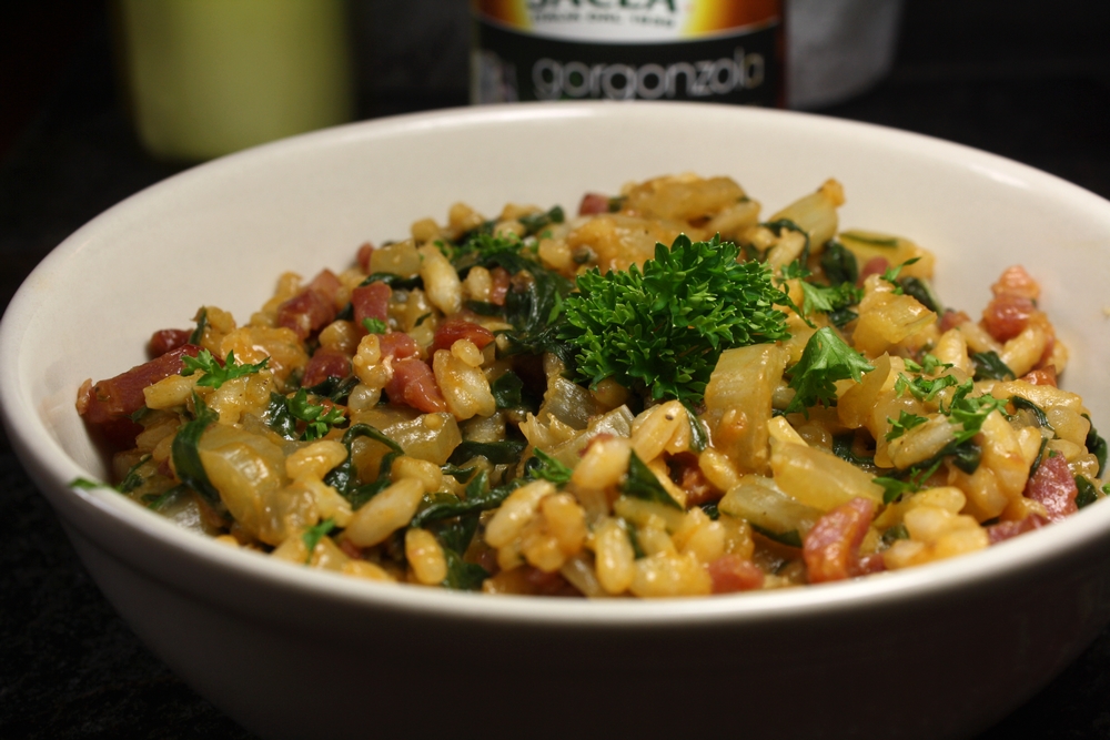 Risotto de blettes & bacon sauce oignon doux gorgonzola [Saclà]