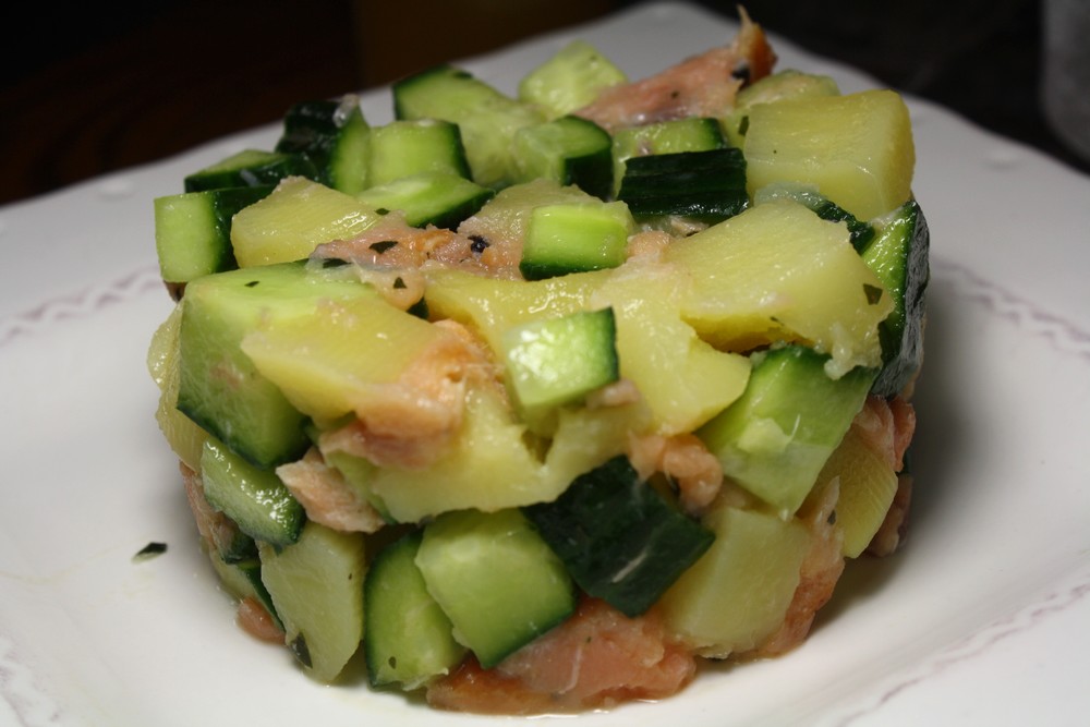 Salade de pommes de terre, saumon & concombre