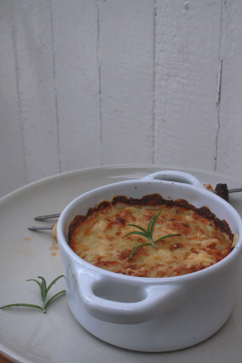Encore des courgettes, et oui en plus, j’en ai encore plusieurs qui m’attendent dans le jardin :p. En tout cas moi j’adore, je ne m’en lasse pas. J’ai décider de réaliser cette délicieuse purée de courgettes & pommes de terre bien sûr, au romarin, le tout gratiné au four ! Un délice, que nous avons accompagné de brochette de St Jacques au chorizo, merveilleux !
