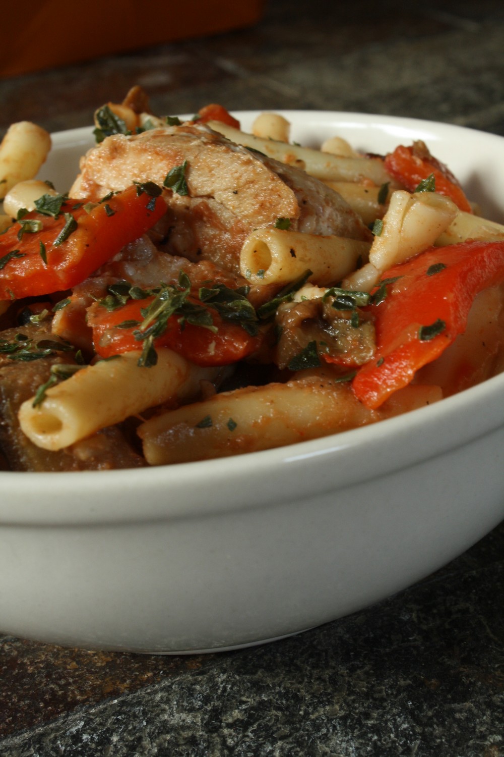 Un plat de pâte très simple à base de poulet préalablement grillés, aux aubergines, poivrons rouges & piment doux ! Un vrai régal pour les papilles, pleines de gourmandises & qui amène le soleil dans l’assiette (on en a besoin en se moment, malheureusement cela ne va pas aller en s’améliorant!).