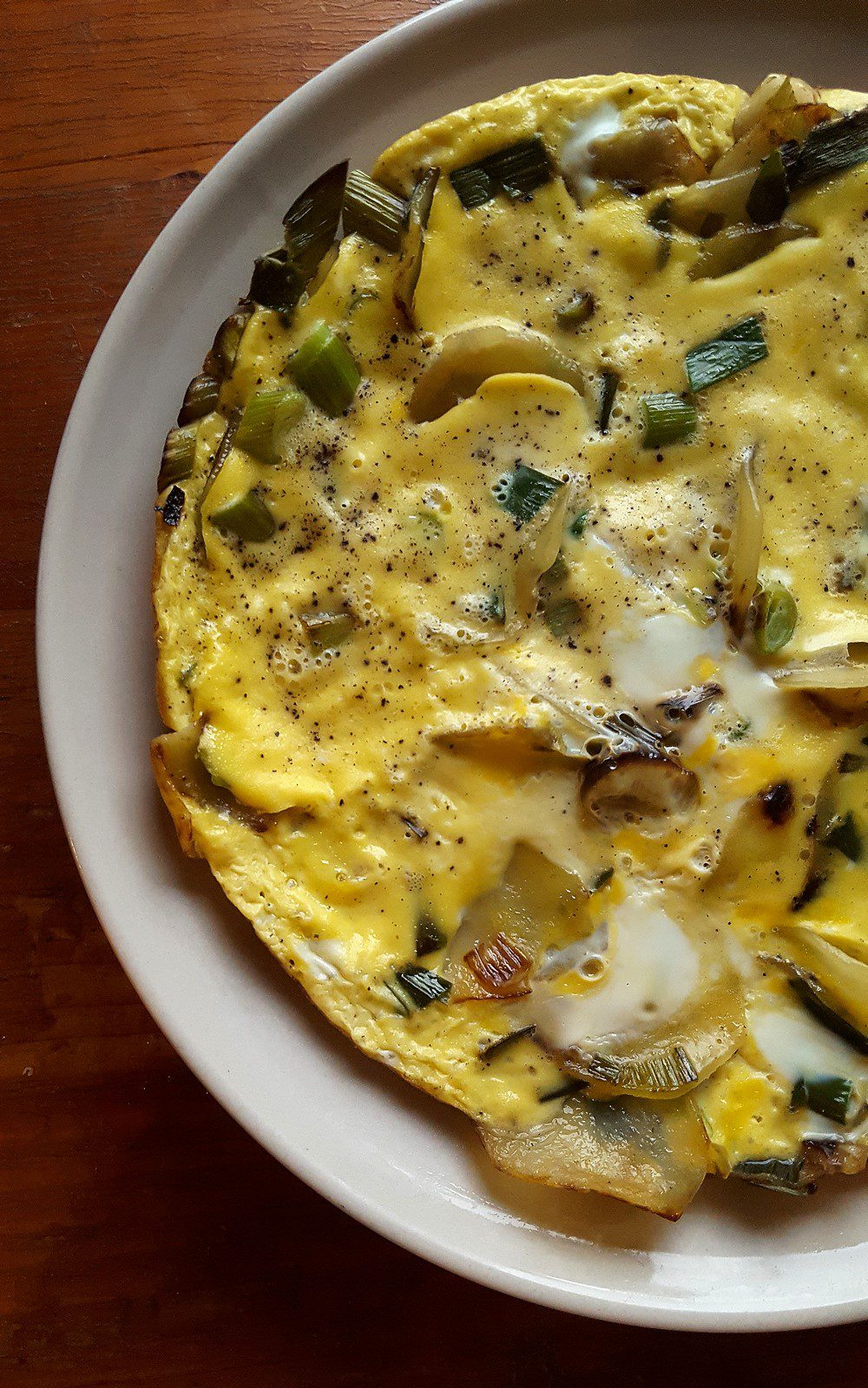 Omelette aux oeufs de caille, pommes de terre & aillet