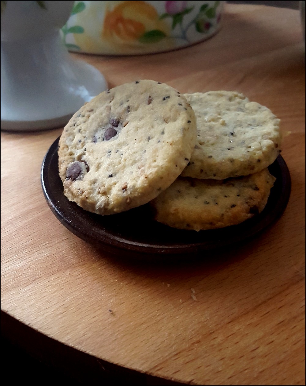 A la maison, nous nous faisons de plus en plus attention à ce que nous mangeons, nous n’achetons pratiquement plus de produits transformés, j’essaie de tout faire moi même (même les produits d’entretien, mais ça, c’est un autre domaine). La première chose que nous n’avons plus acheté, ce sont les biscuits industriels ! Monsieur adore les fameux sablés de la célébre marque Bonne Maman aux graines, c’est vraiment qu’ils sont vraiment très bon.