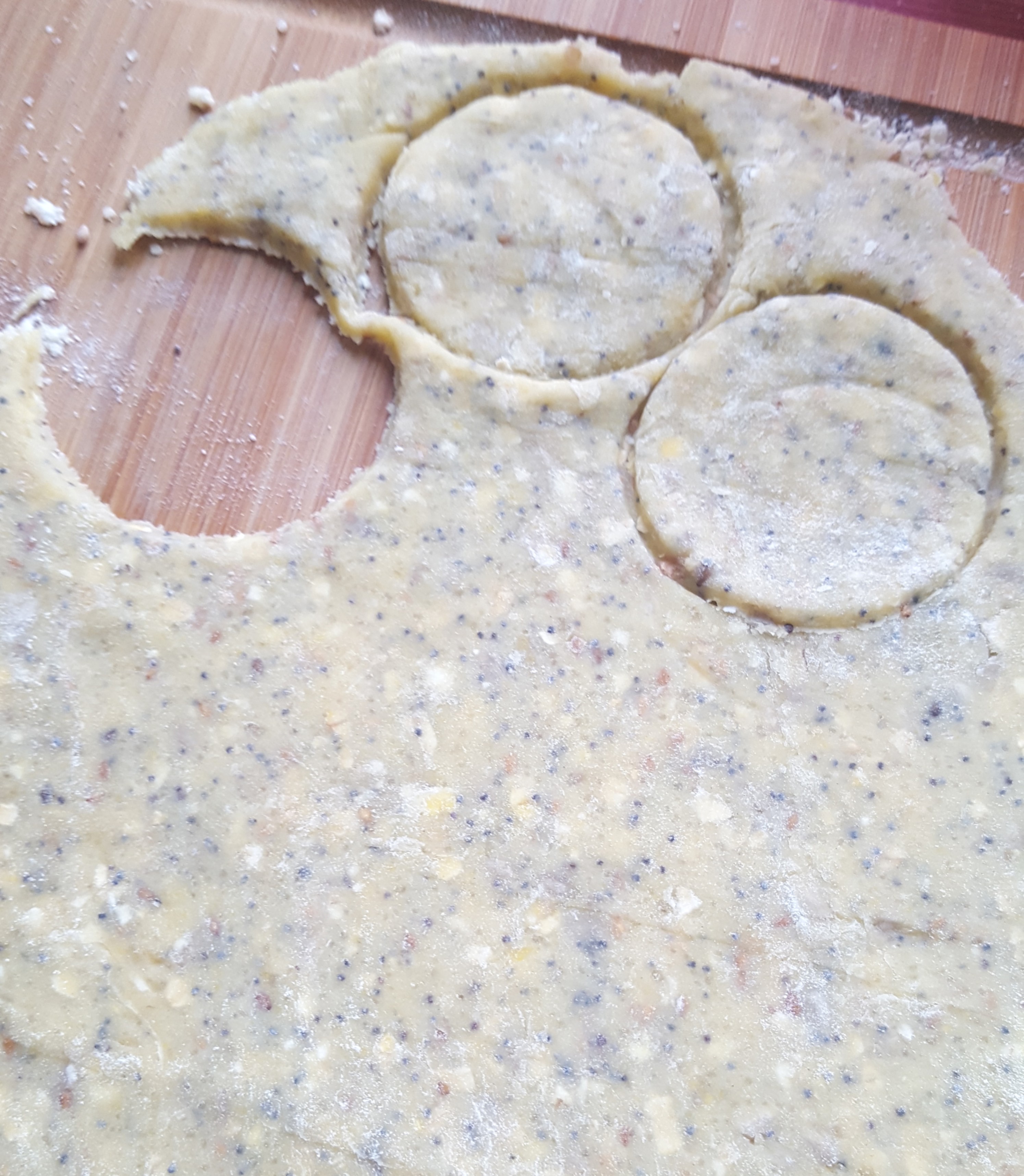 Étalez la pâte sur un plan de travail fariné, sur une épaisseur d’un demi centimètre. Découpez des biscuits avec un emporte-pièce rond (ou un petit verre). Déposez-les sur une plaque recouverte de papier sulfurisé. Faire cuire environ 15/20 minutes (tout dépends de votre four).