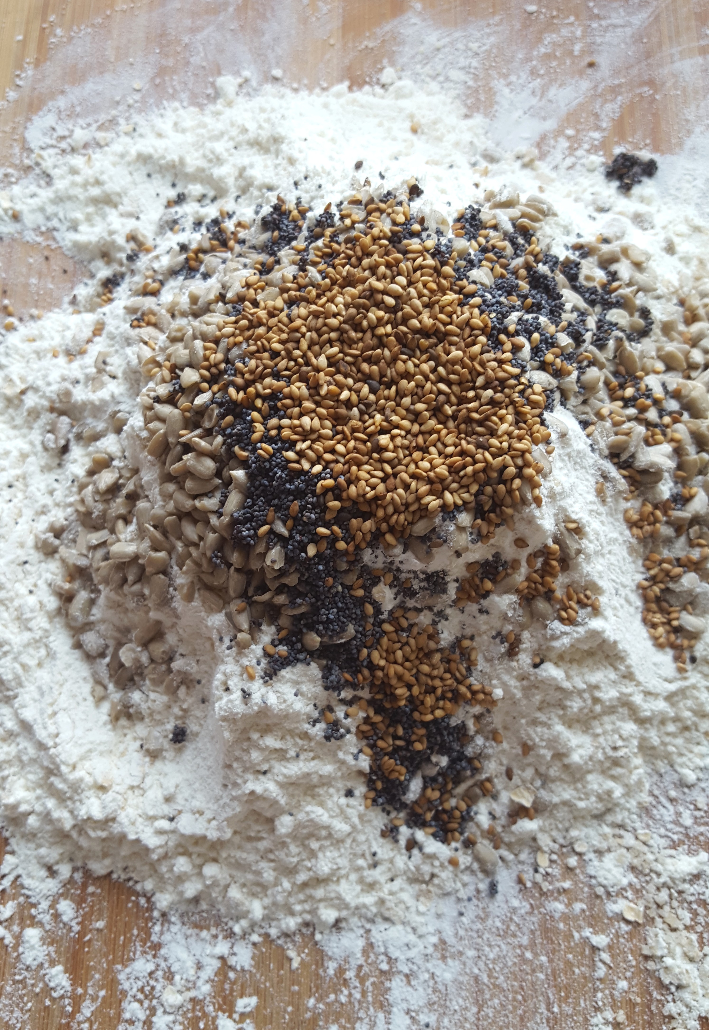 Dans un premier temps, mélanger la farine, le sucre, le sel et les flocons d’avoine puis les graines sur le blanc de travail. Incorporer le beurre moux jusqu’a ce qu’il soit bien intégré au mélange précédent (n’hésitez pas à utiliser les doigts, c’est plus facile).