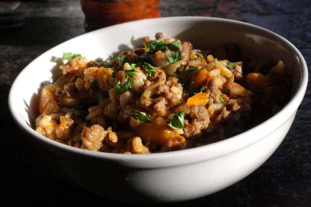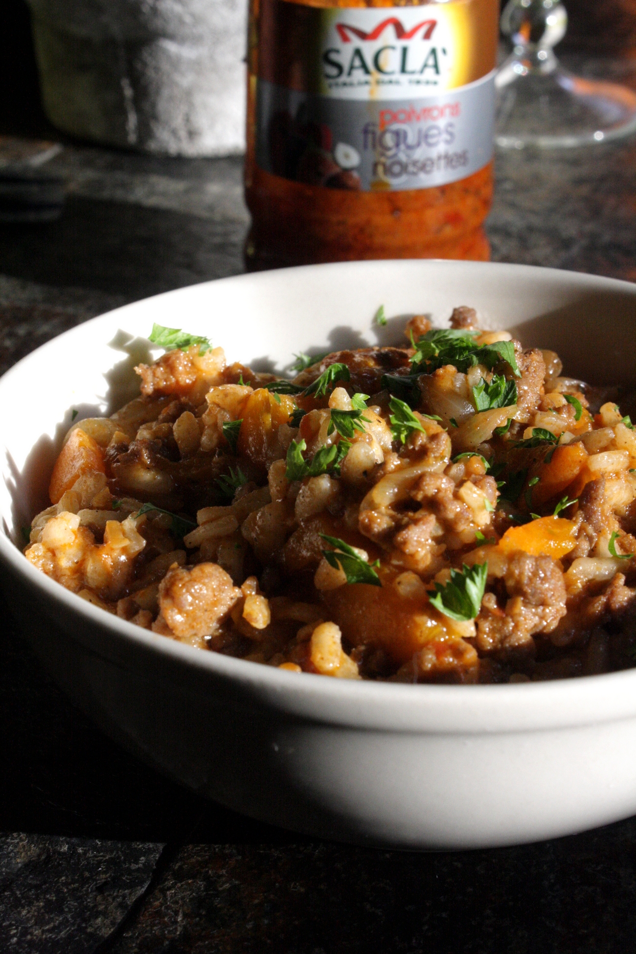 Risotto de boeuf hachés, poivron, figue & noisette [Saclà]