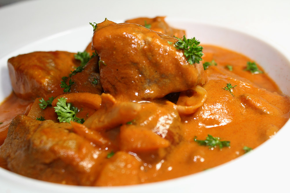 Le Bœuf Stroganov ou Bœuf Stroganoff (en russe Бефстроганов) est un plat originaire de Russie, à base de viande de boeuf accommodé de Paprika, d’oignons et de champignons. J’ai utilisé le paprika de mon partenaire Pan y Tomate.