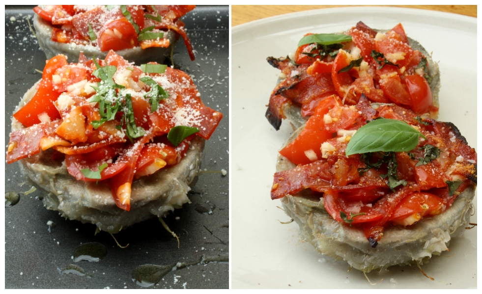 J’ai reçu il y a quelques jours, de beaux artichauts Cardinal de la marque Prince de Bretagne , afin de réaliser quelques recettes pour les mettre en valeur. Il est vrai qu’on ne cuisine pas très souvent les artichauts, et il est pas toujours facile de trouver des recettes qui change un peu de l’ordinaire. J’ai voulu réaliser une entrée simple mais très gourmande en utilisant les fond d’artichaut. Les feuilles fut dégusté tiède avec une vinaigrette à la moutarde (hors de question de gaspiller!).